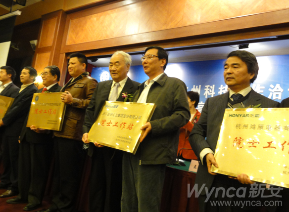 瀏覽量:6733 11月16日,在杭州舉行的2010年“中國科學(xué)院—杭州科技合作洽談會暨第七屆京滬杭(國際)高科技產(chǎn)業(yè)化交流活動”中,杭州市委常委、副市長沈堅等市相關(guān)領(lǐng)導(dǎo)為“杭州院士專家工作站”授牌,公司總經(jīng)理季誠建和公司首位駐站的中國工程院沈寅初院士一起鄭重的接過了院士專家工作站的匾牌。