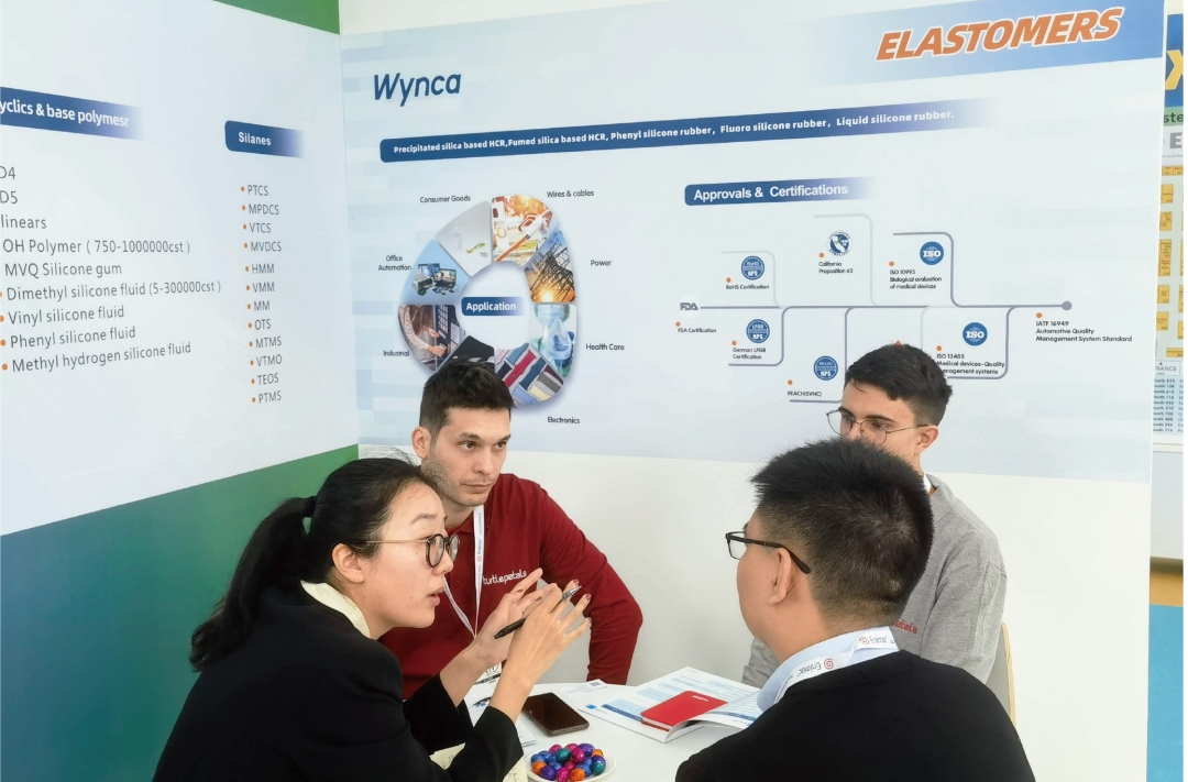 近日,歐洲有機(jī)硅博覽會(huì)(Silicone Expo Europe)在荷蘭阿姆斯特丹舉行,是歐洲第一次舉辦有機(jī)硅專(zhuān)業(yè)展會(huì),為有機(jī)硅行業(yè)提供了一個(gè)重要的交流平臺(tái),本次博覽會(huì)共有100余家國(guó)際知名企業(yè)參與,涉及彈性體,流體,樹(shù)脂,壓敏膠及生產(chǎn)設(shè)備等多個(gè)行業(yè)。新安攜全系列硅基新材料產(chǎn)品亮相博覽會(huì)現(xiàn)場(chǎng),集團(tuán)副總裁魏濤攜有機(jī)硅海外業(yè)務(wù)團(tuán)隊(duì)參加展會(huì),業(yè)務(wù)團(tuán)隊(duì)向客戶們?cè)敿?xì)介紹了新安硅基新材料的產(chǎn)品解決方案和未來(lái)發(fā)展方向,得到客戶們的認(rèn)可。